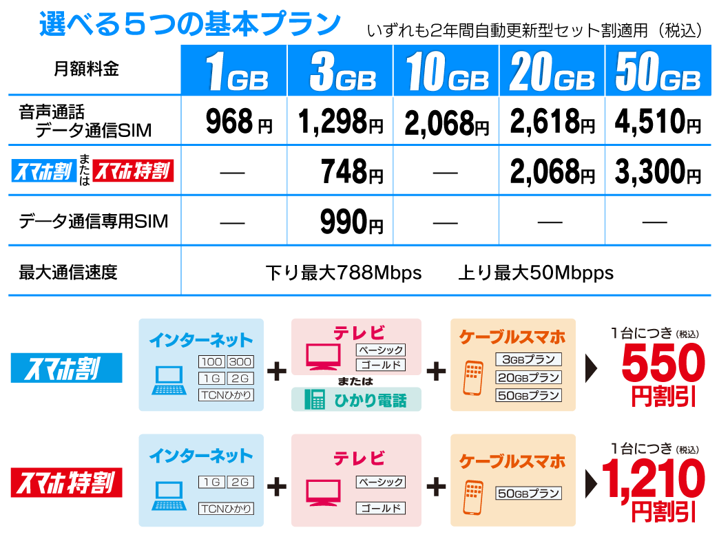 ※「2年間自動更新型セット割引」は、テレビまたはインターネットをご利用の方かつ2年間自動更新型をお申し込みで適用されます。