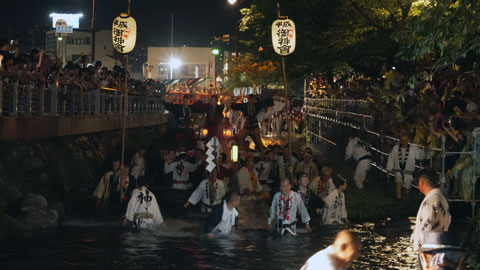 毎年8月の第一土曜日に開催される富士宮の炎の祭典、富士山御神火まつり。富士山の山頂、富士山本宮浅間大社奥宮で採火された御神火を灯した8基の神輿が世界平和を願い、市街地を練り歩きます。クライマックスでは神輿が神田川に入り水流を遡る、迫力のある姿を見る事が出来ます。神輿以外にも和太鼓の演奏や、御神火音頭をはじめとした民踊で大いに盛り上がります。