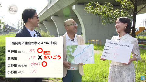 見どころは、竹内アナの「難読地名挑戦」です。「下向田」「小野」「沢川」「城ヶ平」「鞍馬寺」 漢字そのものは難しくないのに、読み方が難しい? ➡答えはこちら 福岡町歴史民俗資料館は、歴史ファンにとってはとっても楽しい場所です。