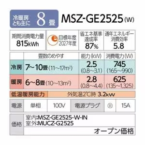 三菱 霧ヶ峰エアコン(MSZ GE2525)8畳用