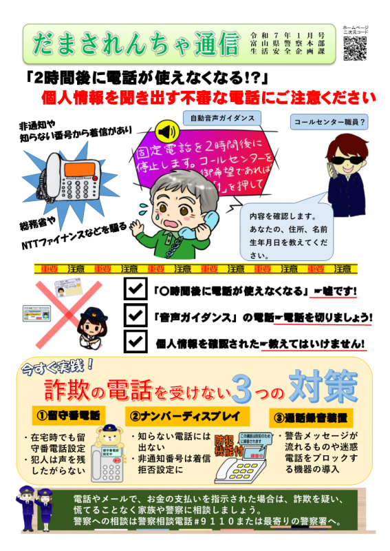不安に思った場合や、個人情報を伝えてしまった場合は、警察や消費生活センターへご相談ください。