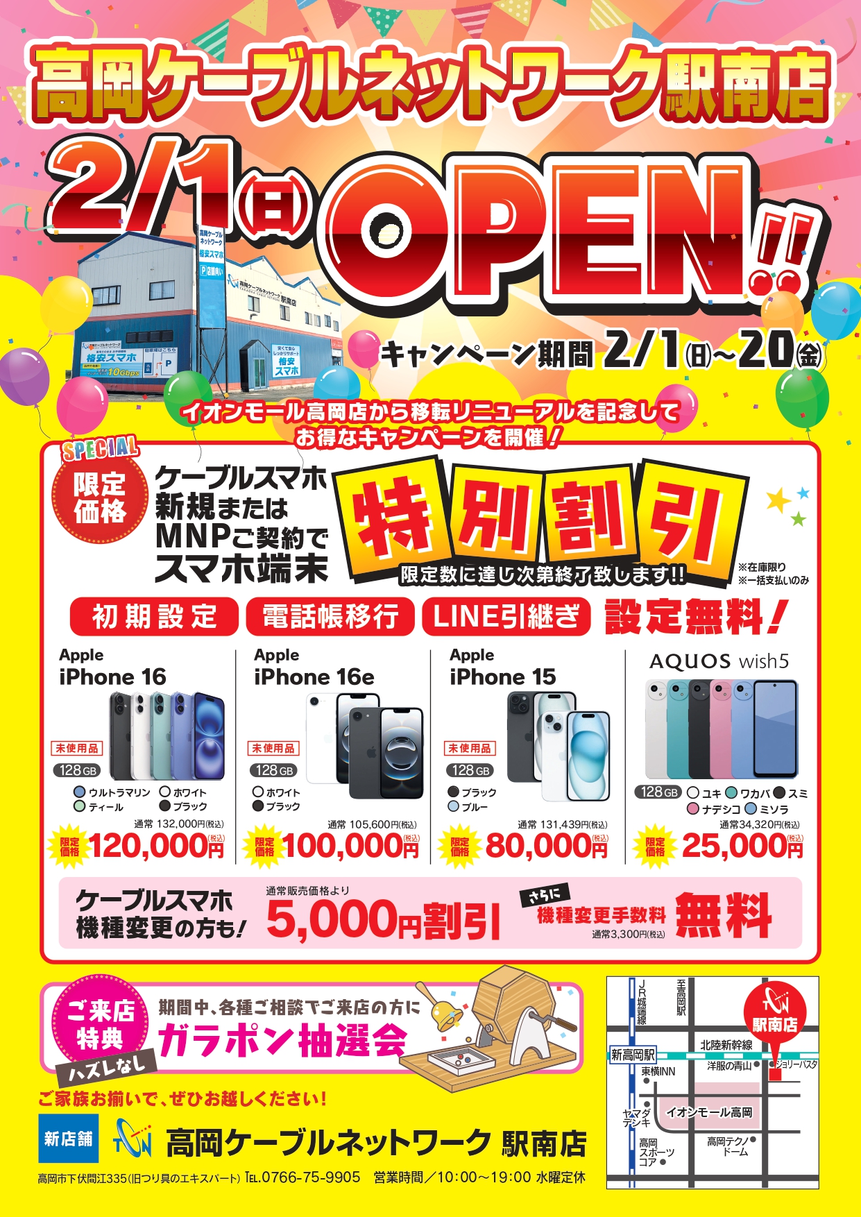 新店舗「高岡ケーブルネットワーク 駅南店」が、2026年2月1日(日)あさ10時にオープンいたします。