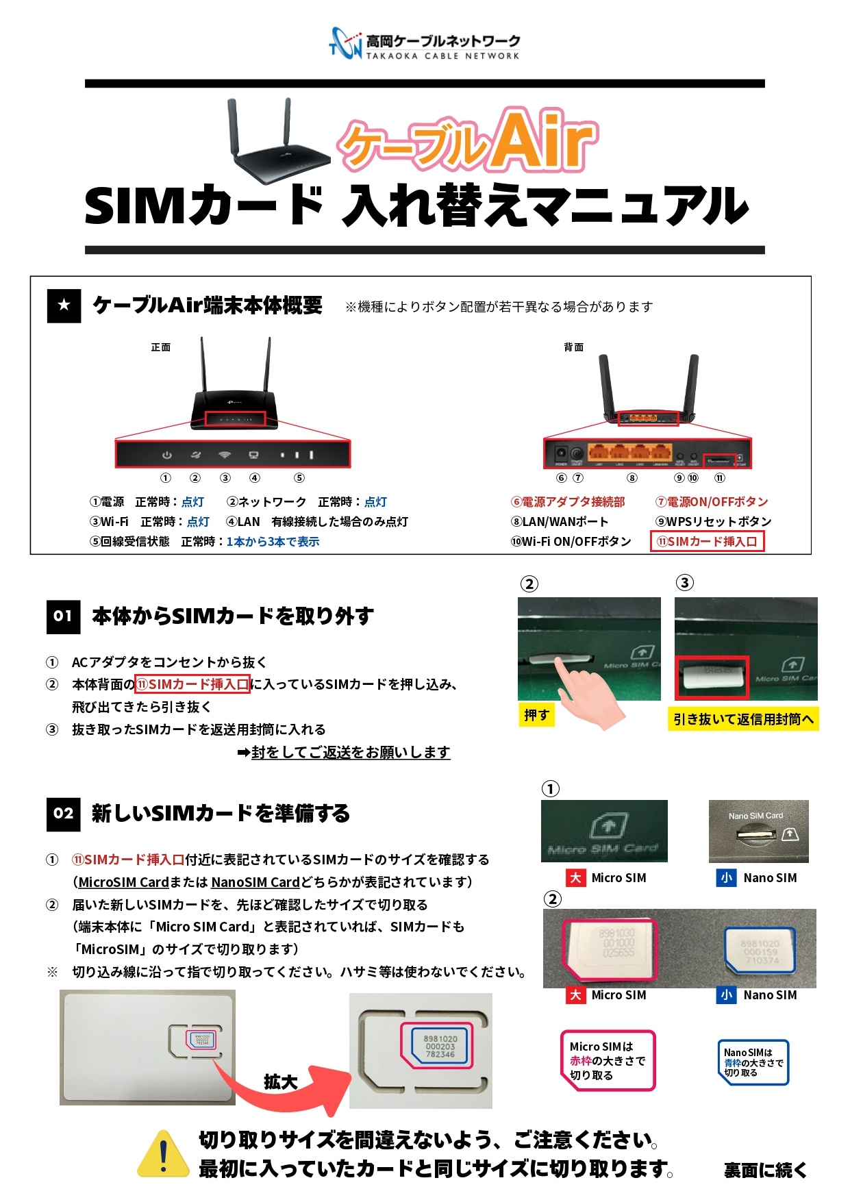 無線インターネット(ケーブルAir) SIMカード交換のお願い