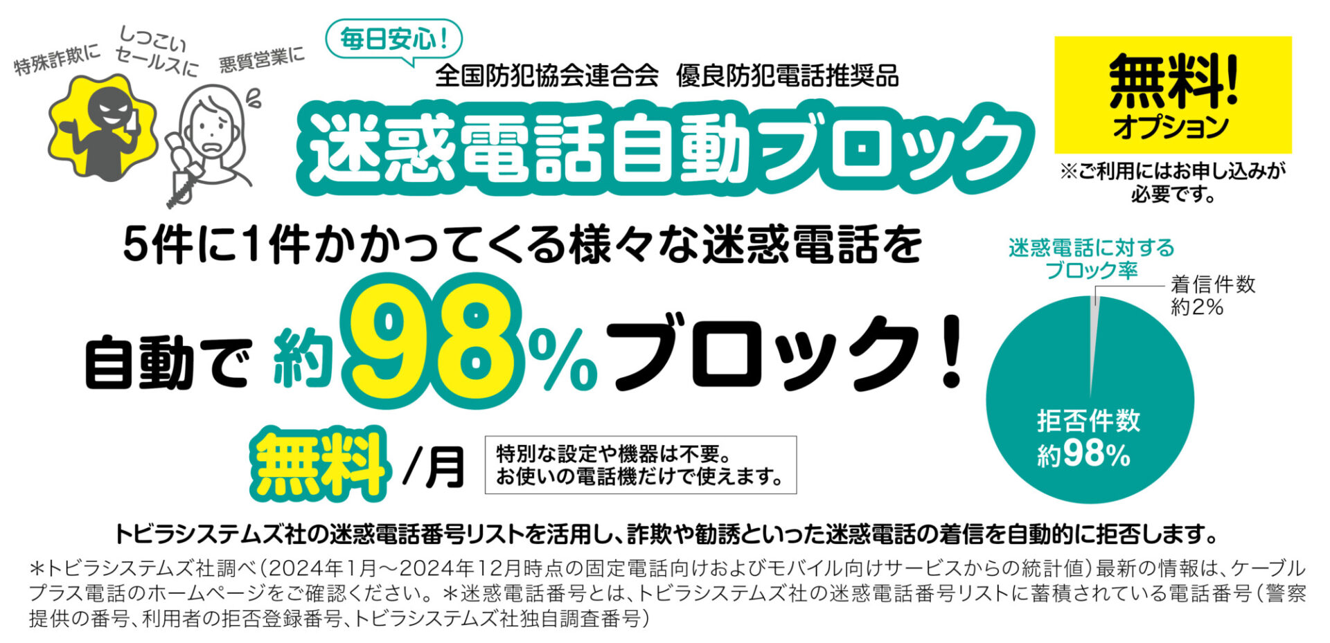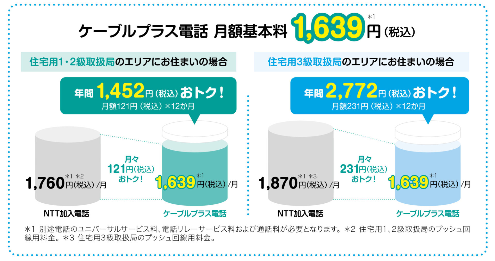 | NTT加入電話 | ケーブルプラス電話 | |||